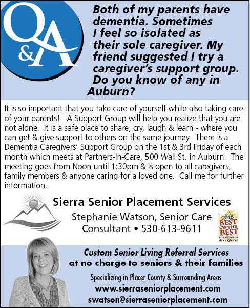 Both of my parents have dementia. Sometimes I feel so isolated as their sole caregiver. My friend suggested I try a caregiver’s support group. Do you know of any in Auburn?