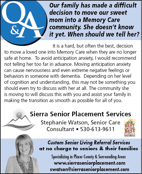 Our family has made a difficult decision to move our sweet mom into a Memory Care community. She doesn’t know it yet. When should we tell her?